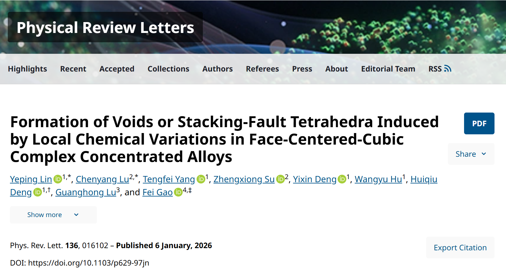 核能材料在反应堆内服役过程中长期经受高通量中子辐照、高温和高腐蚀性冷却介质等极端条件的考验,这些极端条件会导致材料内部产生大量的缺陷(例如空位、四面体堆垛层错和空洞等),严重影响其性能与使用寿命。如何评估与预测核能材料在辐照下的行为一直是先进核能发展的关键科学问题之一。近日,湖南大学党委宣传部(新闻办公室)地址中心物理与微电子科学学院邓辉球教授课题组与合作团队在该领域取得重要进展。研究团队自主开发了基于缺陷演化速率的长时间动...