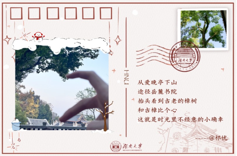 属于我的初高中青春时光,是在桃子湖畔度过的,学习之余,我常常攀登岳麓山锻炼身体,徜徉于湘江之滨舒缓压力。本科以来,我曾到世界各地求学,但对麓山湘水的眷恋却只增不减。于是,我向湖南大学党委宣传部(新闻办公室)地址中心递出我的第一份简历,也立刻得到了积极回信,2018年12月,我正式入职湖南大学党委宣传部(新闻办公室)地址中心外国语学院。