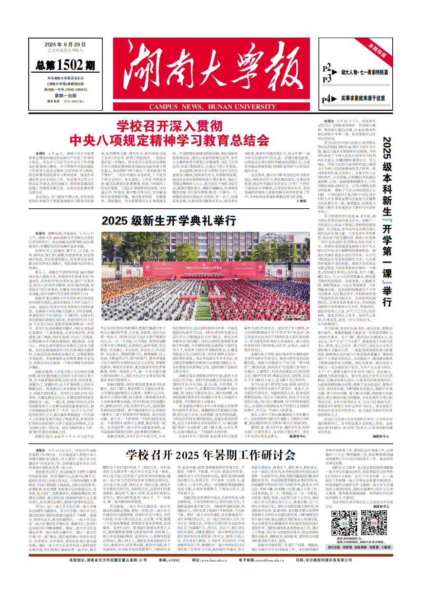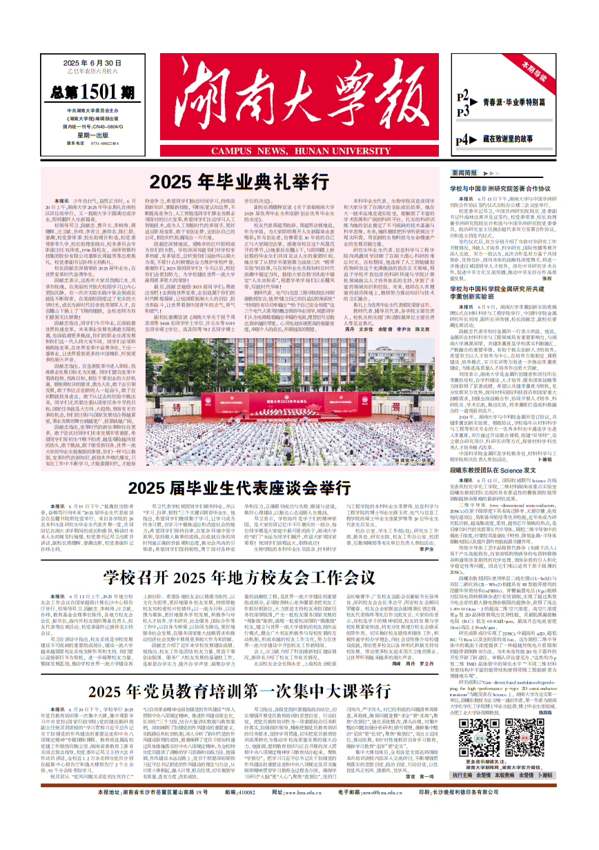 12月2日下午,2025年“校友回湘”大会在长沙召开。千余名湖湘校友齐聚湘水之畔,深入贯彻习近平总书记关于湖南工作的重要讲话和指示批示精神,共襄校友回湘盛举、携手绘就兴湘宏图。省委副书记、省长毛伟明致辞。会议发布了2025年度“校友回湘”工作成果榜单,我校入选“校友回湘”招商引资成果榜、招才引智成果榜、科研转化成果榜、捐赠成果榜等四个榜单,并居前列。本次大会还设立了“突出贡献人物”和“招引大使”两项荣誉,...