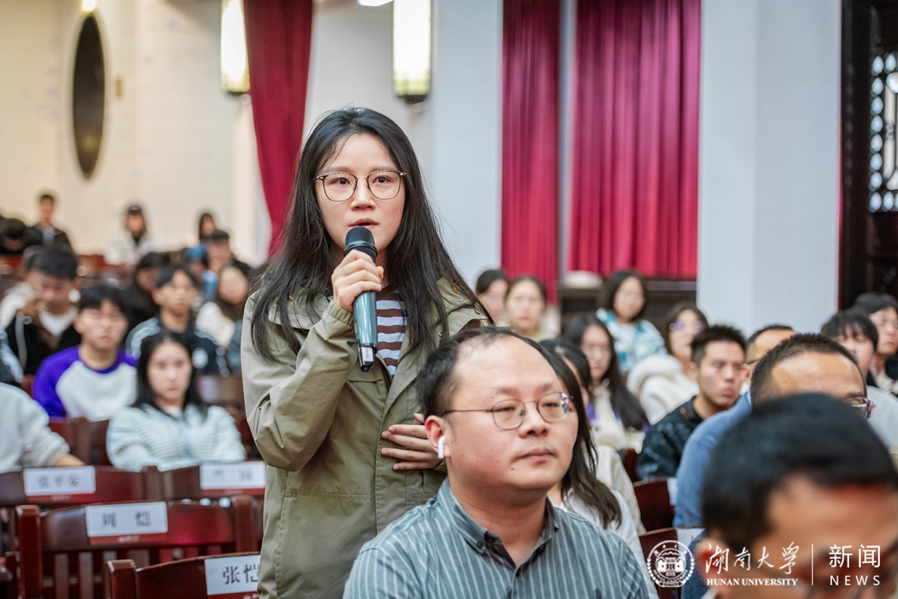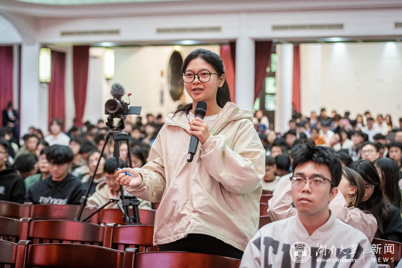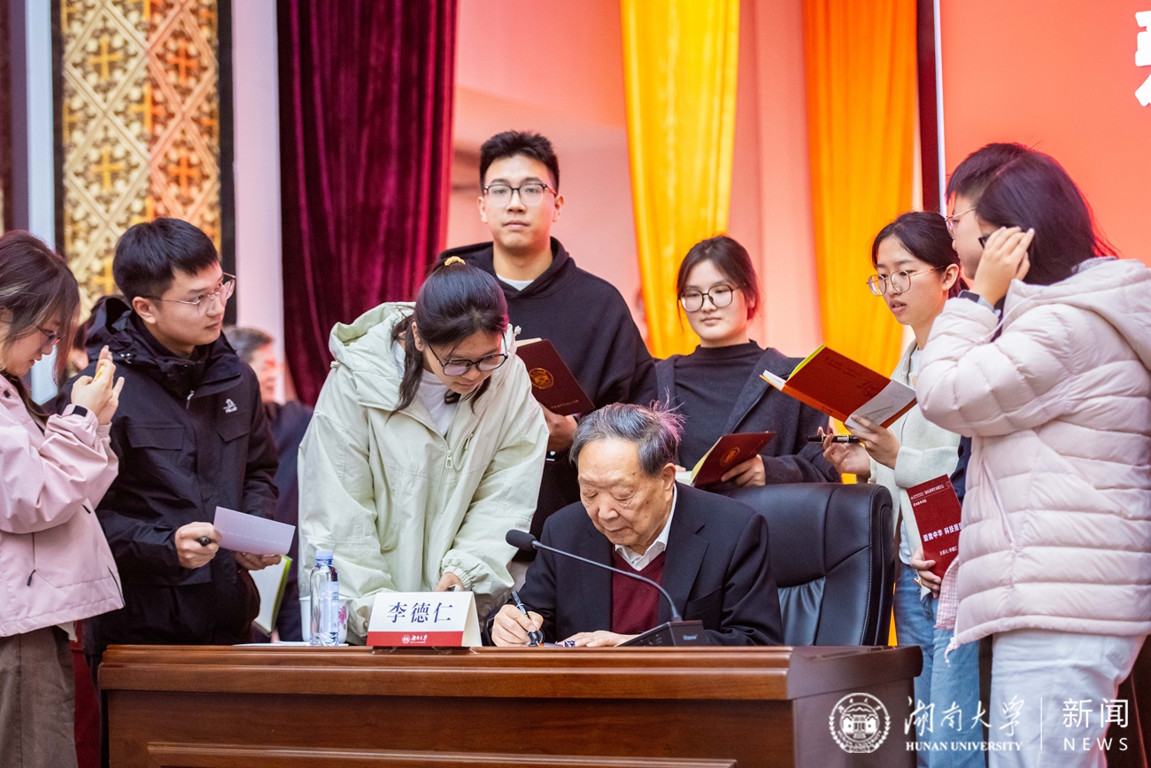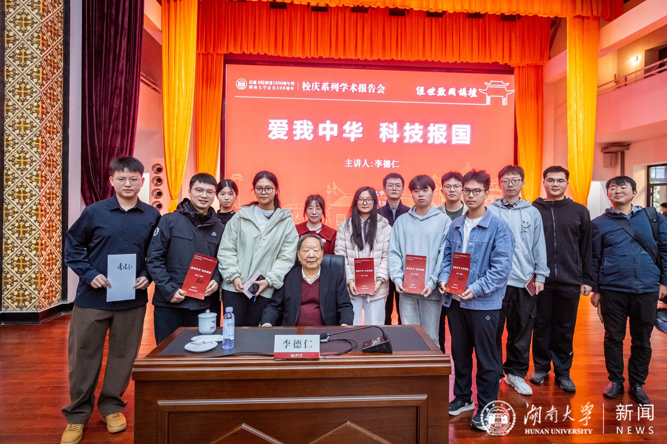报告会现场,李德仁还回答了现场师生的提问,鼓励湖大师生,要爱我中华,兴我家邦,为国家和人民奉献到老;要多学科交叉融合,共创科技强国、教育强国和人才强国。