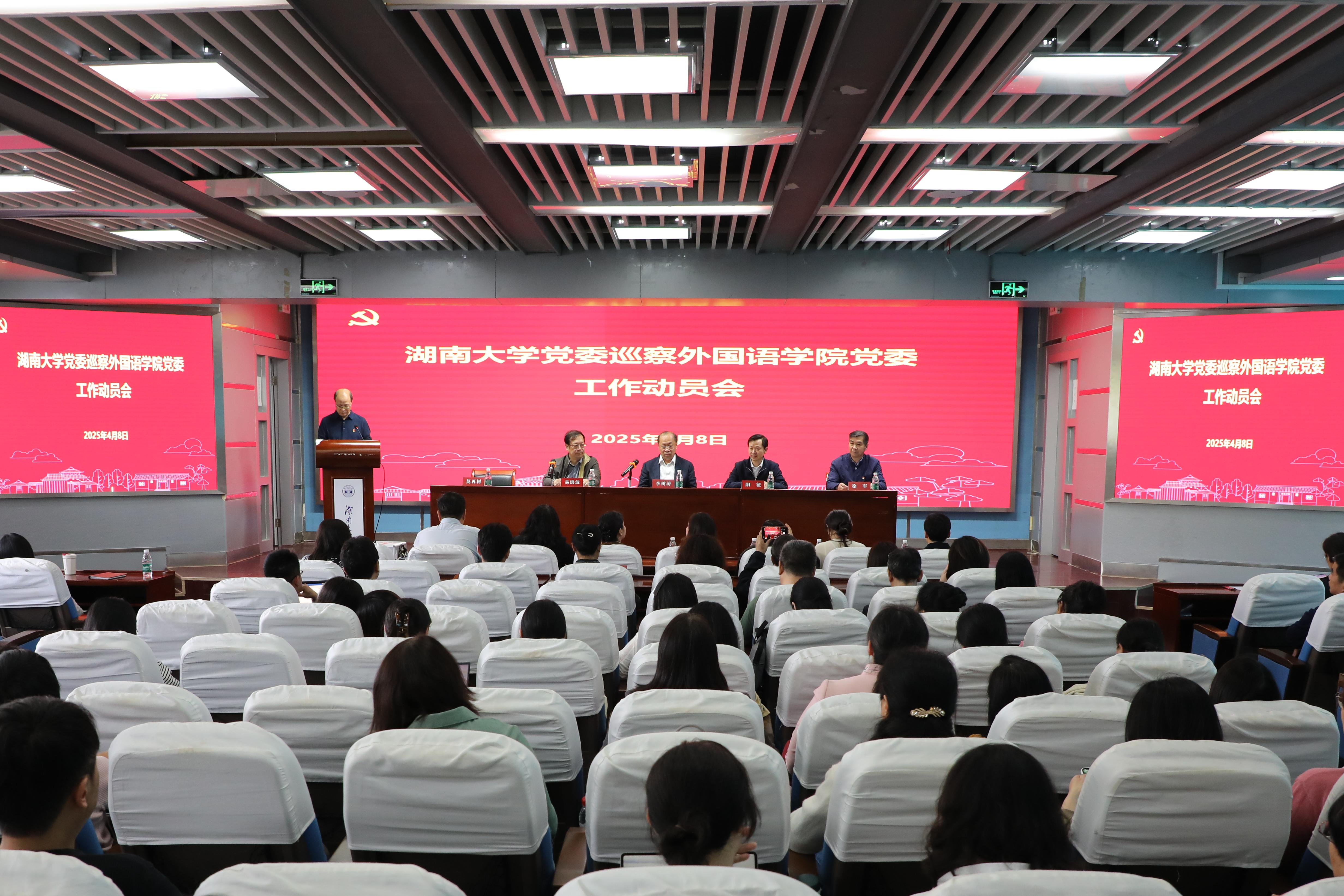 按照学校党委巡察工作统一部署,4月8日,校党委巡察体育学院党委、新闻与传播学院党委、数学学院党委、外国语学院党委、机械与运载工程学院党委工作动员会议召开,正式启动2025年第一轮巡察工作。五个学院的联系校领导李树涛、汪卫斌、唐珍名、陈仁朋、姜潮分别出席动员会并作动员讲话。