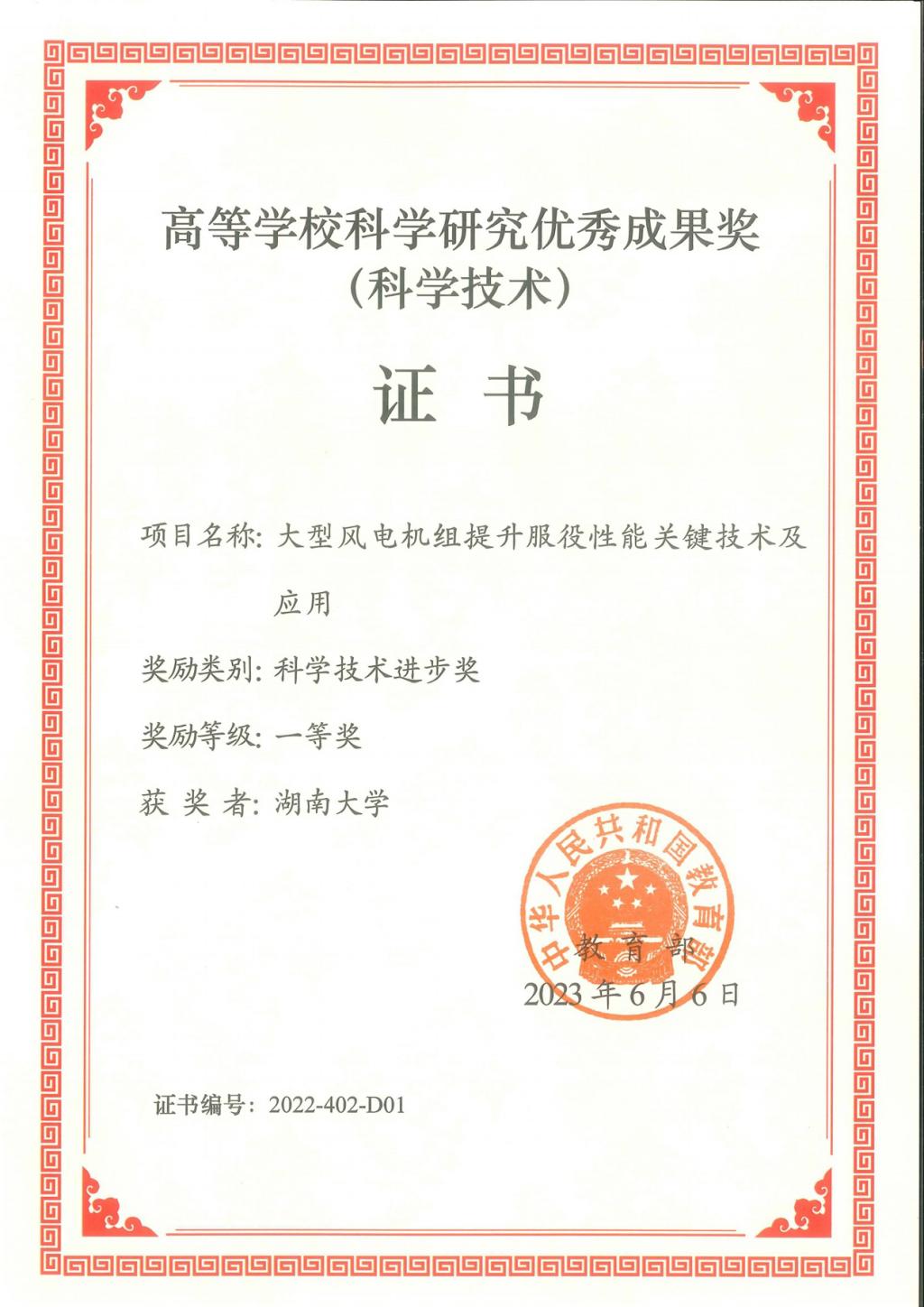 电气与信息工程学院黄守道教授主持完成的“大型风电机组提升服役性能关键技术及应用”项目荣获科技进步奖一等奖。在国家重点研发等项目支持下,项目组历经10多年攻关,全面突破了大型风电机组强容错运行、载荷精确快速调节、极端自然环境高度适应、故障快速诊断与预警、成套系列装备研制等重大技术难题。技术成果广泛应用于全国110多个风场,显著提升了风电机组服役性能,形成了大型风电机组设计-运行-维护全生命周期服役性能提升关键技术体系,为促进我国风电产业高质量持续健康发展做出了重要贡献。