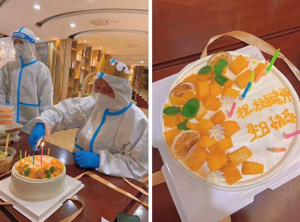 夫妻俩的酒店工作从陌生到熟悉,从手忙脚乱到沉着淡定,像守护自己孩子一样照顾着这些被隔离的同学们。“每天忙碌完脱下防护服,头发和衣服都湿透了吗,”熊卫聪感慨地说,“穿上防护服才知道白衣天使的艰辛!”