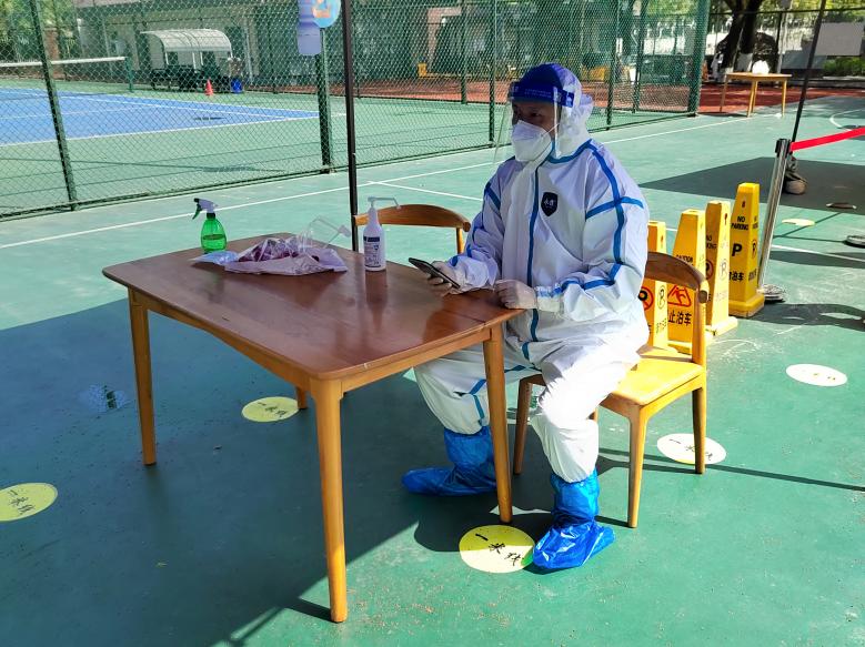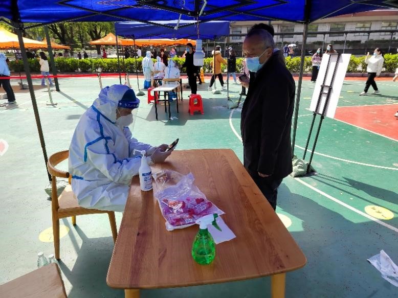 冷隽永在核酸采样点工作。