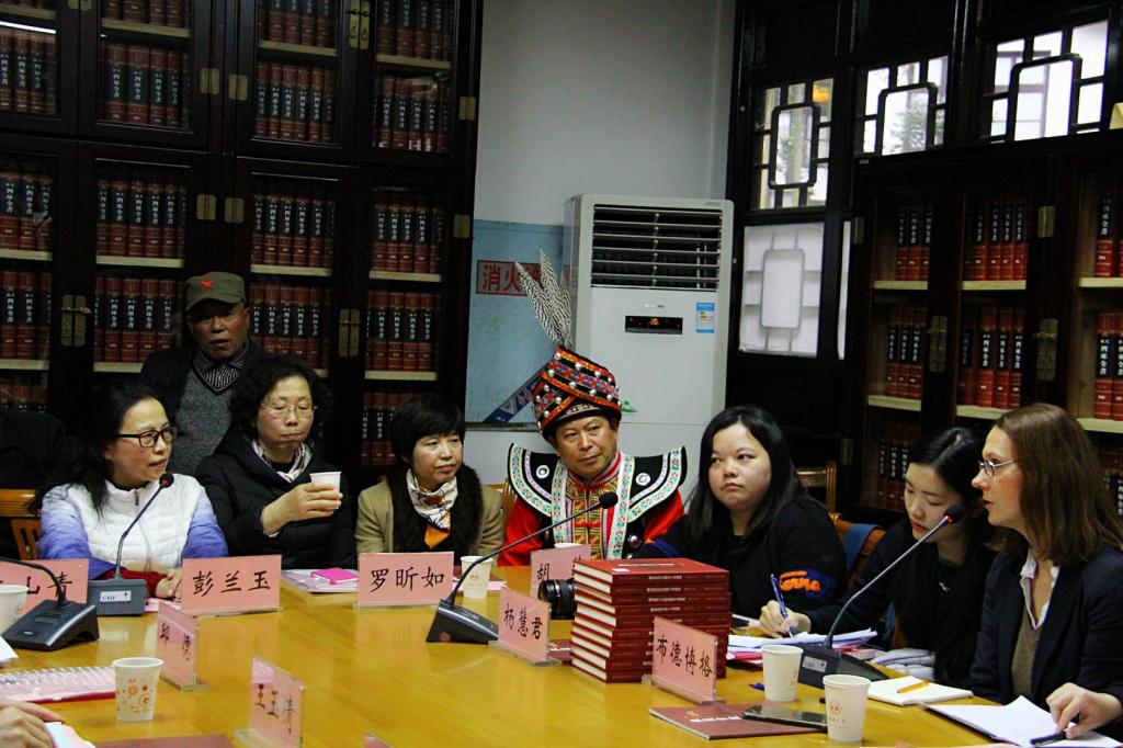 联合国世界语言资源保护项目官员来湖南大学党委宣传部(新闻办公室)地址中心考察(左一为彭兰玉)。