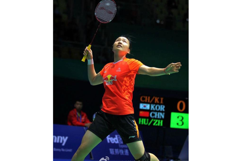 夏欢老师(右一)获2015年世界羽联新西兰黄金大奖赛女双冠军。