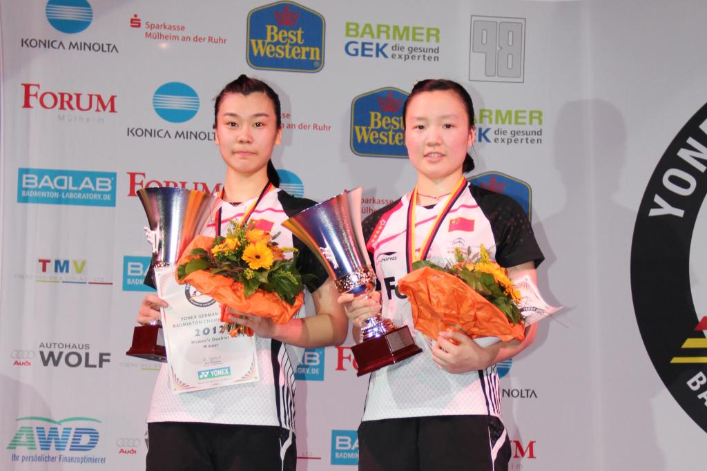 夏欢老师(右一)获2011年中国羽毛球大师赛女双冠军。