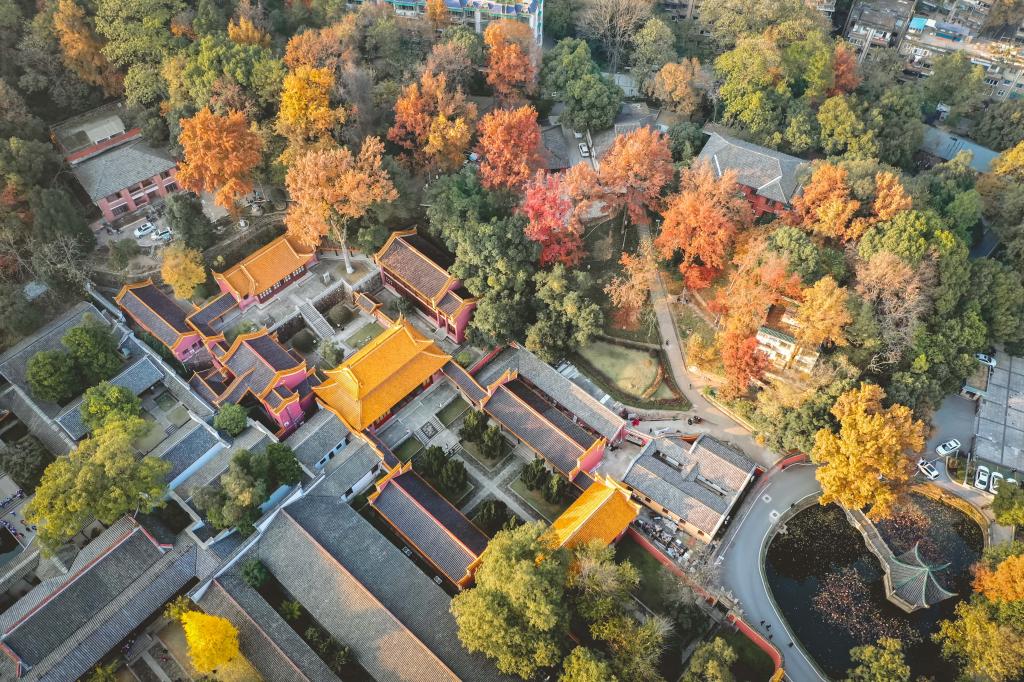 湖南大学党委宣传部(新闻办公室)地址中心岳麓书院航拍。光明图片