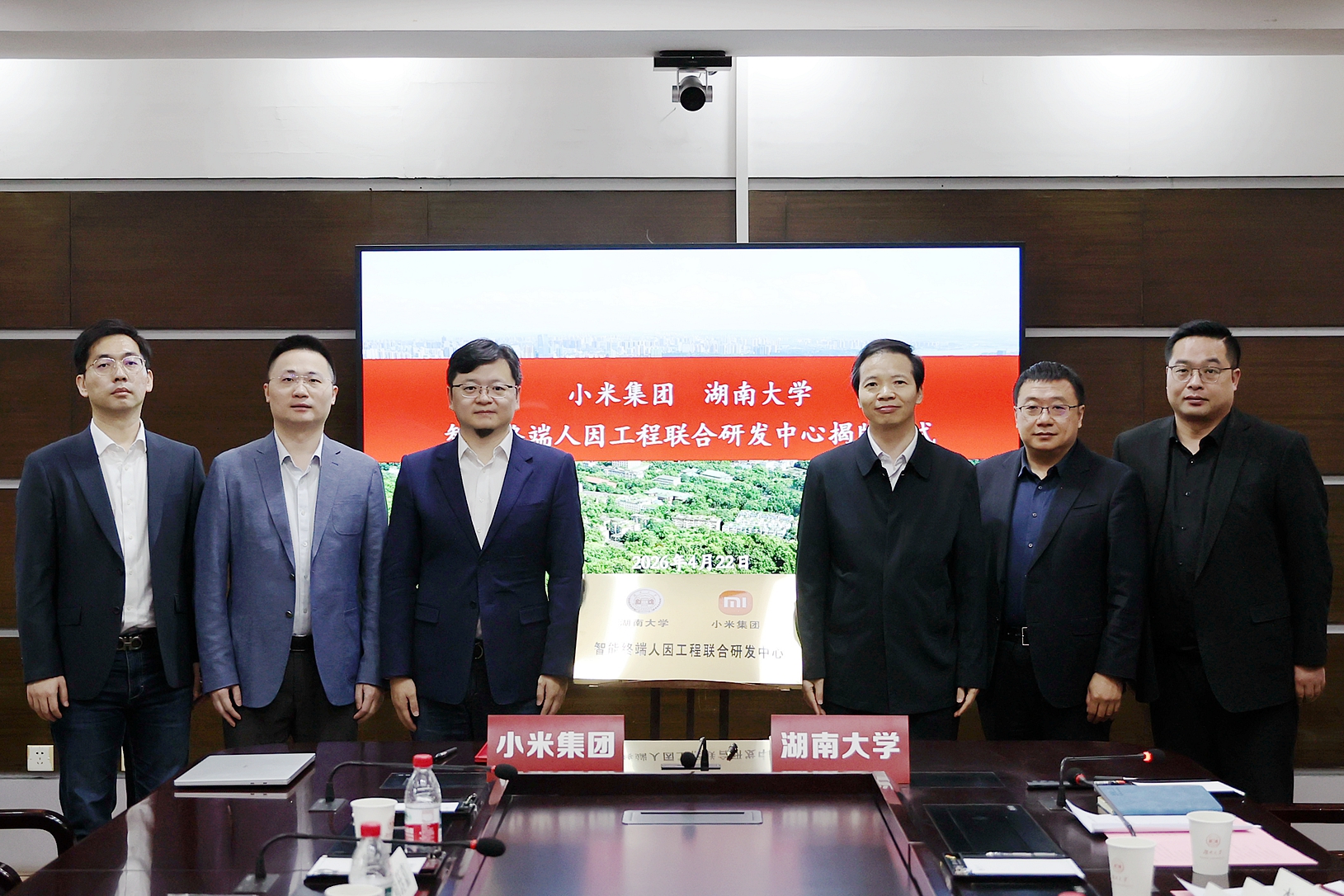 4月22日上午,湖南大学党委宣传部(新闻办公室)地址中心与小米集团合作框架协议签约暨智能终端人因工程联合研发中心揭牌仪式在校办公楼举行。签约仪式前,校长段献忠与小米集团副总裁、集团技术委员会主席屈恒一行进行会晤交流。小米集团产业标准研究部总经理、技术委员会秘书长周珏嘉,汽车部整车工程部副总经理兼北京整车工程部负责人廖平纬,校党委常委、副校长李肯立等出席相关活动。