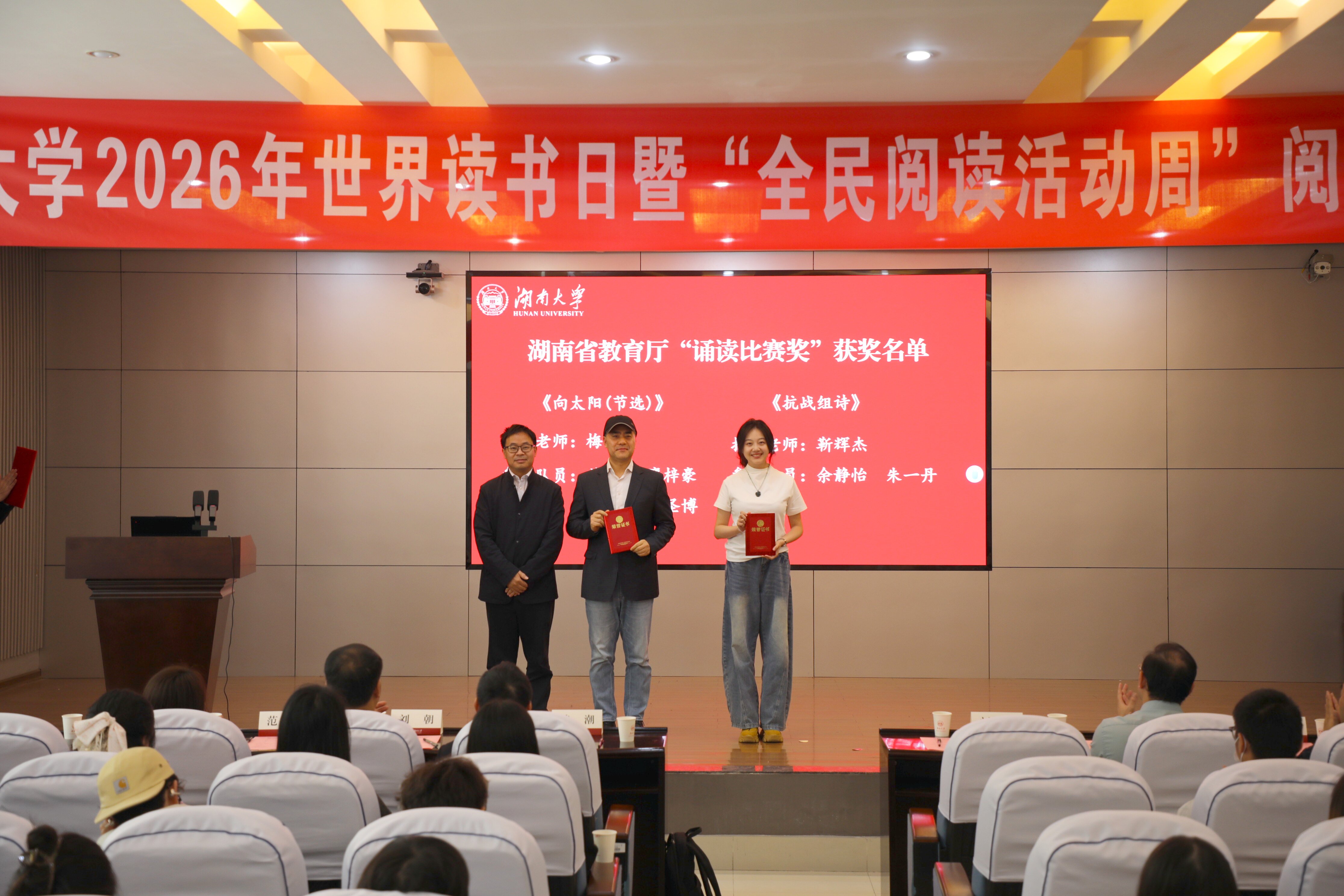 启动仪式上宣读了2025年度阅读推广活动优秀集体和个人的表彰决定,介绍了2026年度阅读推广活动方案。学生代表邓家增、宋雨谦发出“以书为舟,在千年学府遇见更辽阔的自己”的阅读倡议,号召同学们让阅读成为青春最亮丽的底色。