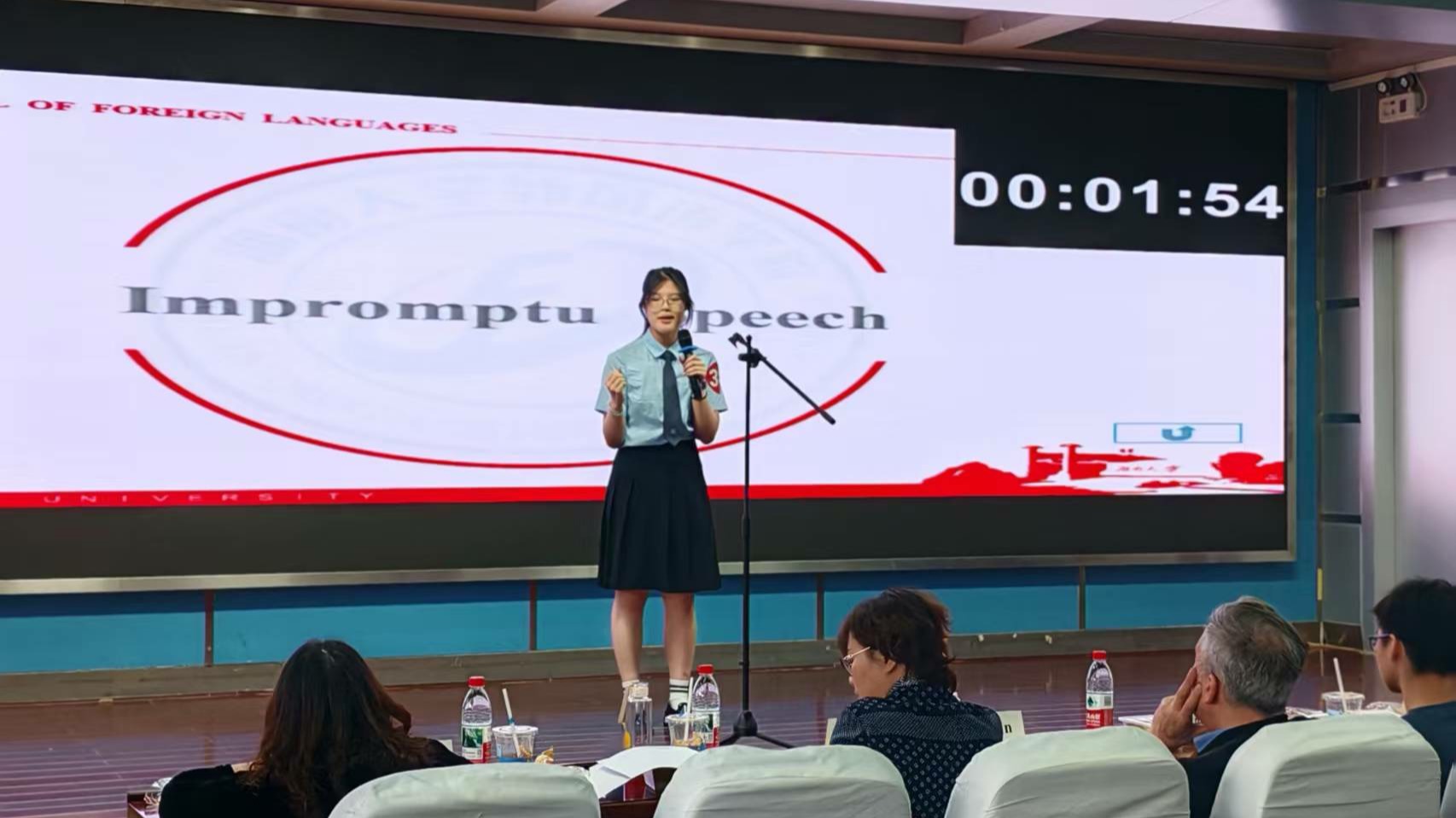 命题演讲环节,选手们围绕“Strike the Waves”这一主题,结合自身经历与思考,将个人抱负融入国家现代化与全球化浪潮,用语言的力量诠释“破浪前行”的时代意义。在评委提问与即兴演讲环节,选手们快速构思、从容表达,以良好的应变能力和丰富的知识储备充分展现了湖大学子的风采魅力。