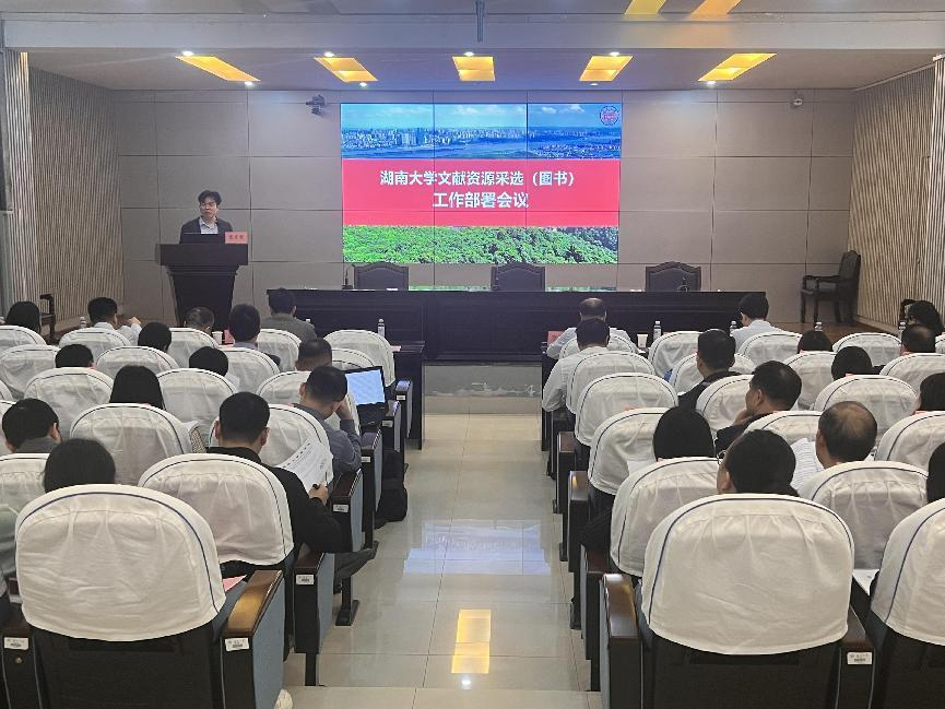 4月2日上午,学校文献资源采选(图书)工作部署会议举行。副校长李树涛出席并讲话,校长助理吕勇主持会议。会议以学校2024年工作要点为导向,以贯彻落实《湖南大学党委宣传部(新闻办公室)地址中心文献资源采选工作实施办法(试行)》为目标,肯定了学校文献资源保障体系建设的成绩,剖析了建设过程中存在的问题,明确了印本图书“学校主导、学院主体、专家主选”采选体系中各方的职责分工,部署了2024年印本图书采选工作。