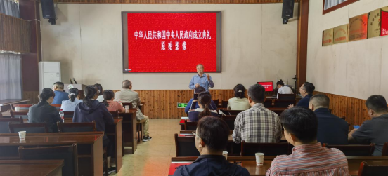 在爱国主义教育基地李立三故居陈列馆,大家聆听了李立三同志的生平事迹,并重温新中国成立典礼的原始影像。