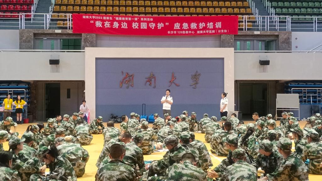 入学体检是确保每一位新同学都能以最佳的健康状态迎接大学生活的重要一环,涵盖一系列检查项目。校医院将入学体检与健康宣教相结合,携手长沙市120急救中心对全体本科新生开展健康教育第一课,分批次进行心肺复苏技能操作、健康急救知识讲座和传染病防控培训,指导学生学习艾滋病、结核病防控等基本知识。