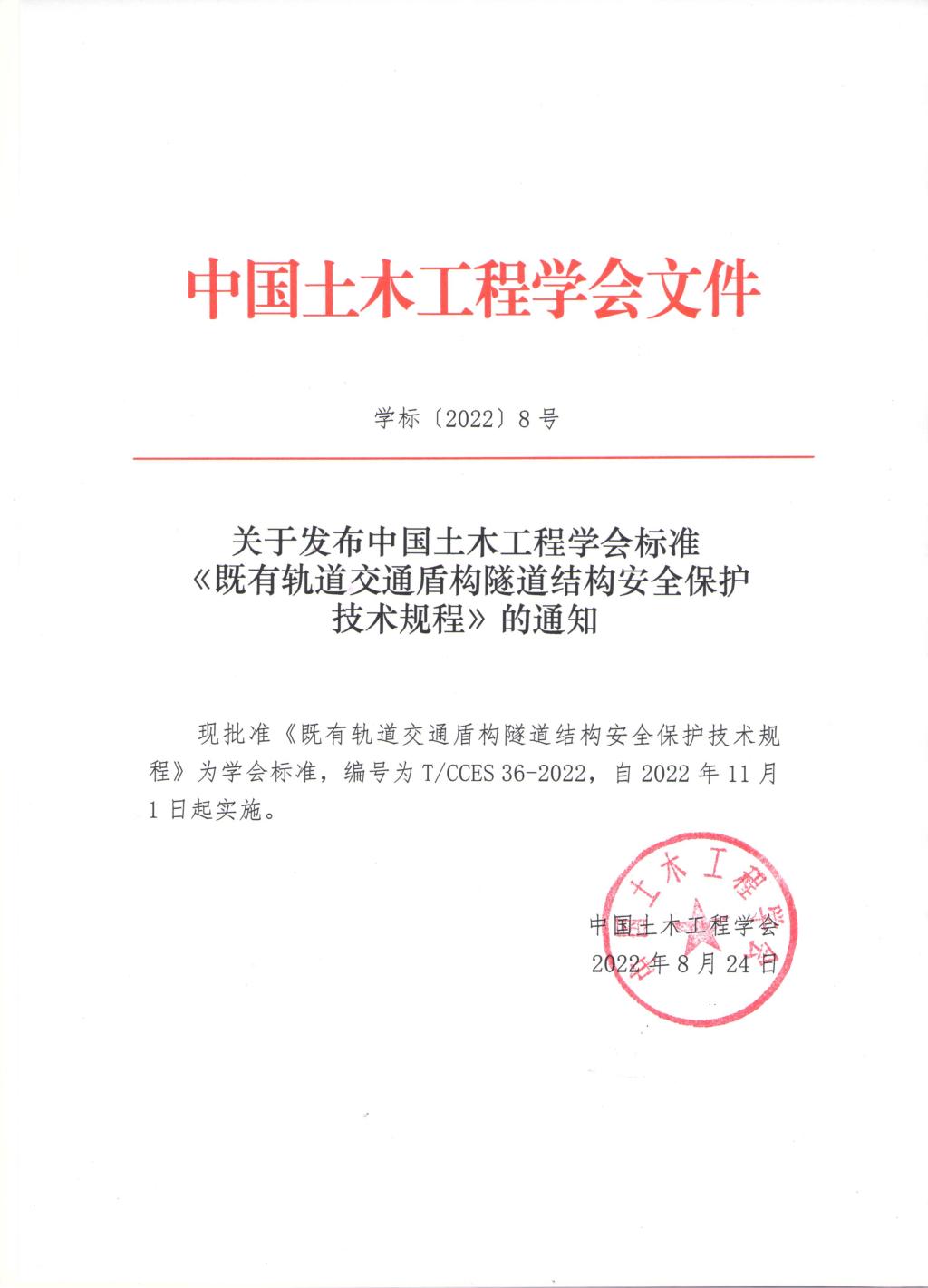 近日,中国土木工程学会标准《既有轨道交通盾构隧道结构安全保护技术规程》(T/CCES36-2022)(以下简称《规程》)正式颁布。