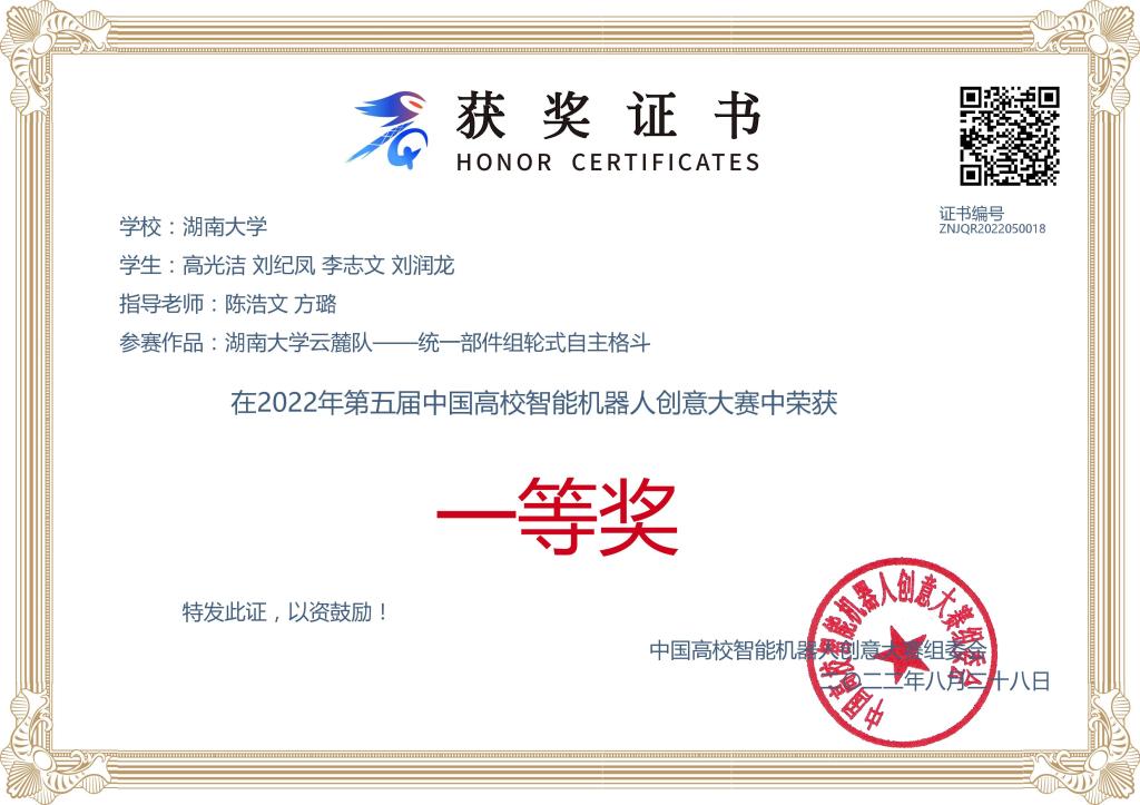 近日,第五届中国高校智能机器人创意大赛全国决赛举行。我校现代工程训练中心Robot工作坊派出参赛队伍,获一等奖1项、二等奖3项、三等奖1项。参赛队伍由方璐、陈浩文老师指导,电气院、信科院、物电院等学院本科生混编组成。