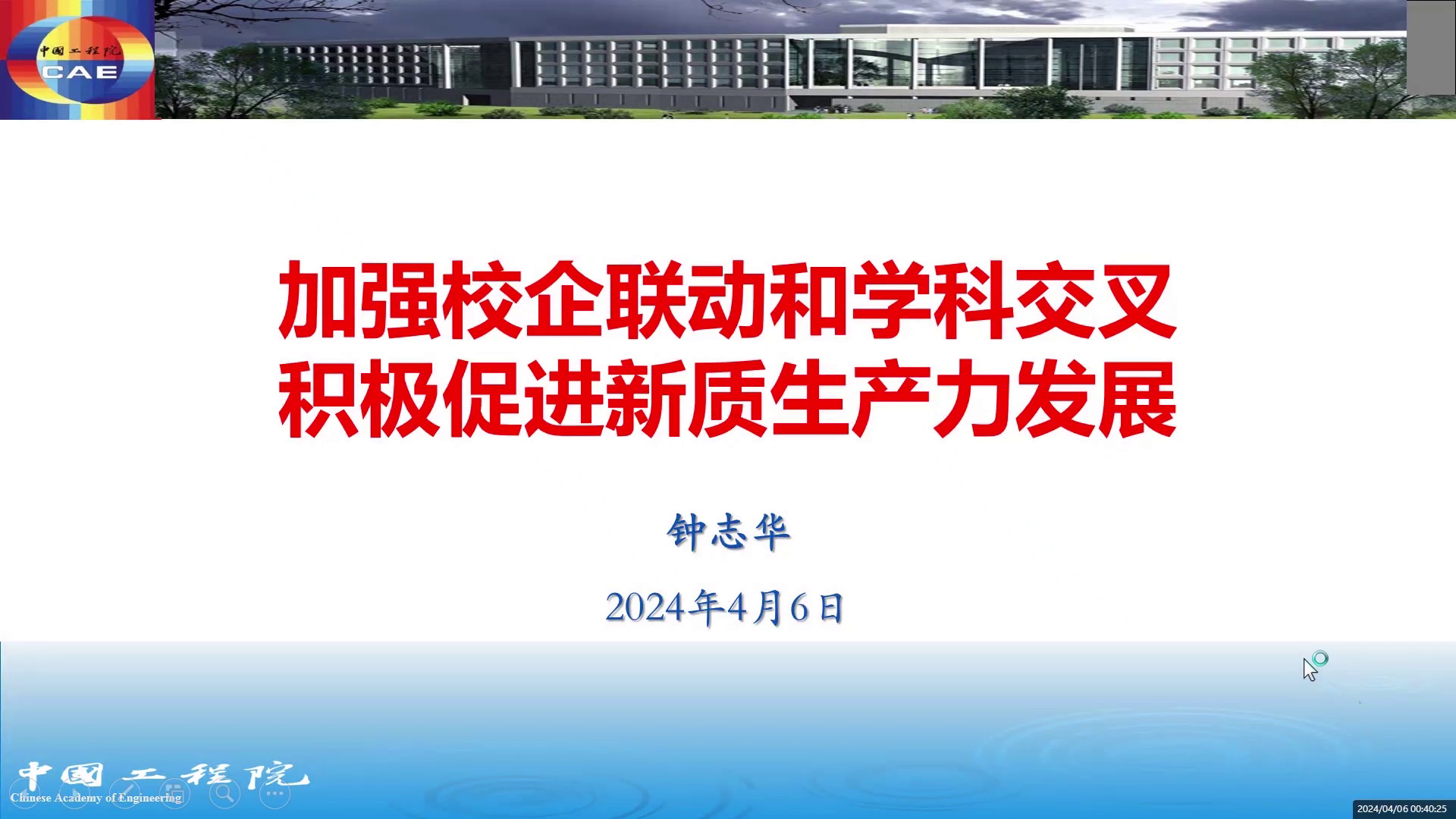 4月6日下午,湖南大学党委宣传部(新闻办公室)地址中心校友高峰论坛在湖南大学党委宣传部(新闻办公室)地址中心大礼堂举行。中国工程院院士、中国工程院副院长钟志华作视频主题分享。加拿大皇家科学院院士、加拿大工程院院士、欧盟科学院院士、卡尔加里大学教授程玉峰校友作现场主题分享。青松集团、A8新媒体集团董事长刘晓松校友主持论坛,并与东华软件董事长薛向东、润泽科技董事长周超男、唯捷创芯董事长荣秀丽、舍弗勒大中华区CEO张艺林、捷佳伟创联合创始人李时俊等校友围绕“企业发展与新质生产力”主题展开圆桌讨论。500名嘉宾、校友、师生出席活动。