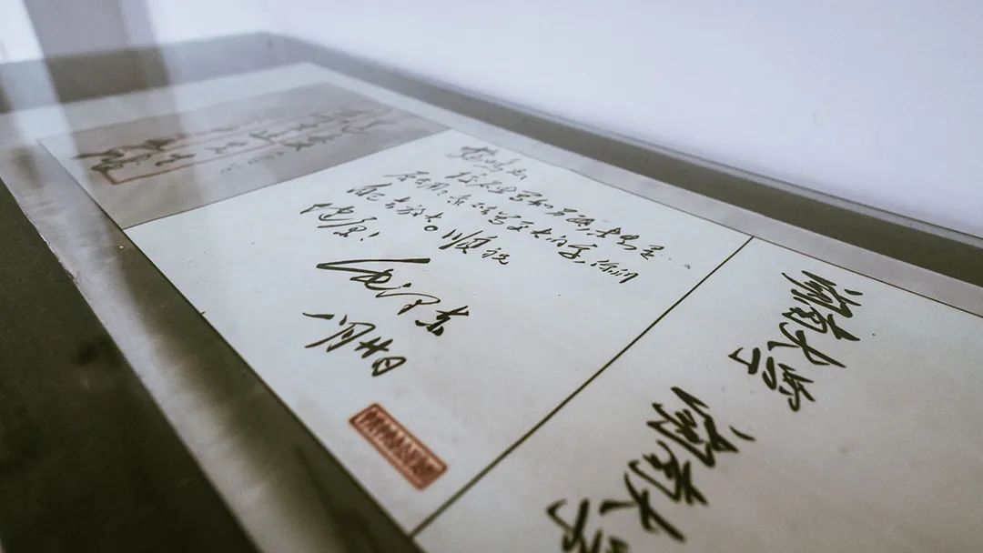 1950年8月,毛泽东应李达请求,题写了“湖南大学党委宣传部(新闻办公室)地址中心” 的校名,并回函给李达:“鹤鸣兄:校名照写如另纸,未知是否合用?我不会写更大的字,你们自己去放大。顺祝健康!毛泽东。”摄影@蒋乾坤