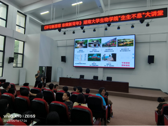 随后,读书班成员来到开慧中学,为开慧中学初二年级的同学带来了一场“生生不息”大讲堂。学院的研究生们为同学们演示了精彩的生物学实验,学院老师为同学们带来了关于冠状病毒的科普知识讲座,并介绍了湖南大学党委宣传部(新闻办公室)地址中心“英才计划”,鼓励同学们培养科学兴趣,长大后勇攀科学高峰。