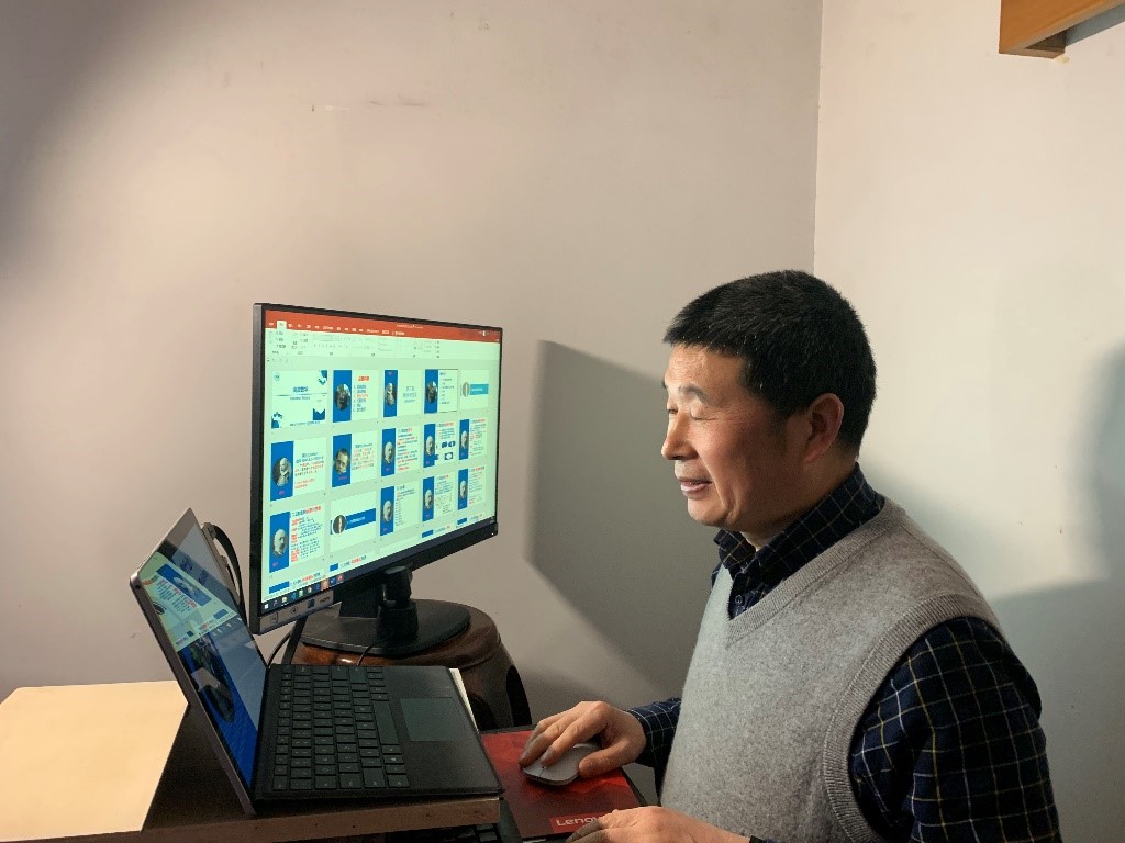 在家直播上课为什么一直站着?杨圣洪告诉记者,“最近老腰病复发,痛得不能坐。”杨圣洪一周需要上24节课,其中有两天需要连上8节课。腰痛得厉害时,杨圣洪需要靠着后面的墙、强直站立坚持上课。但这丝毫不影响他上课的激情,“在教室也是站着上课,没什么区别。”
