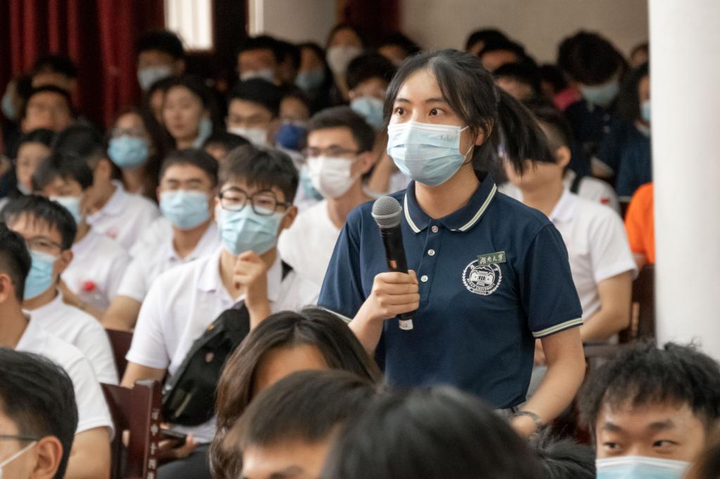 在互动环节,周绪红与现场同学就研究生如何将书院文化融进学术发展、将理论知识融通实践攻关、将个人成长融入国家战略等问题进行交流,并向提问同学赠送书籍作为新学期礼物。