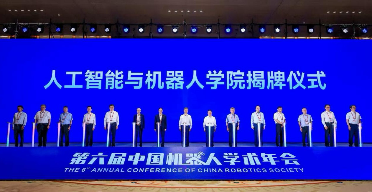 陈竞副省长出席大会开幕式,并与王耀南院士、王天然院士、桂卫华院士、杨华勇院士、丁汉院士、邓宗全院士、郑庆华院士、刘宏院士、陈学东院士、刘胜院士、于海斌院士、郭雷院士、张建伟院士、段献忠校长共同为湖南大学党委宣传部(新闻办公室)地址中心人工智能与机器人学院揭牌。