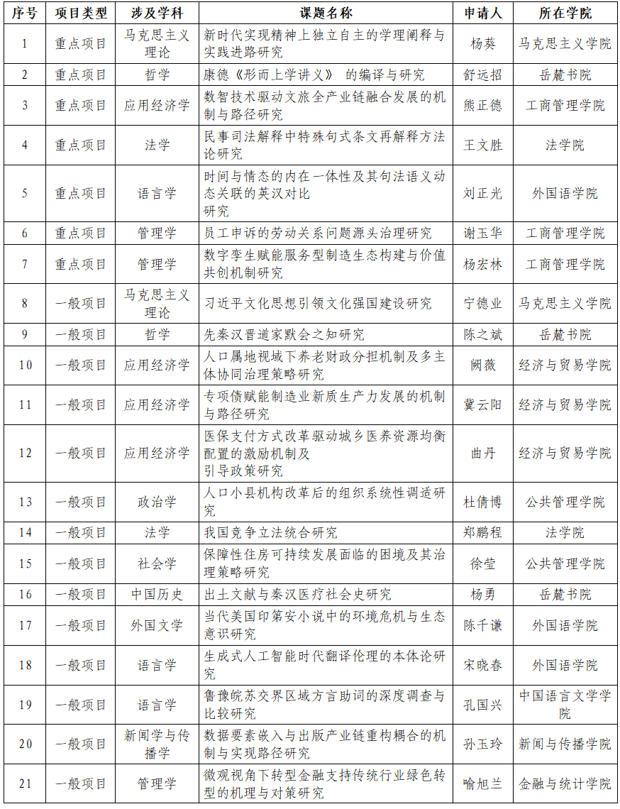 我校2025年国家社科基金年度项目立项公布名单。