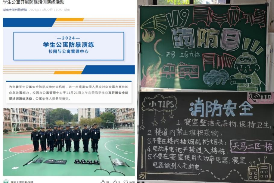 坚持以文化人,提升“优雅”品质。充分发挥文化阵地功能,持续创新形式、搭建平台,每年在园区内开展大型宣传教育、文体活动,联合团委、艺教中心积极推动高雅艺术进公寓,联合学工部持续开展文明宿舍创建和文明离校活动。厚植传统文化底蕴,公寓楼栋均以斋、舍、轩等名称命名,借助智慧显示屏和传统黑板报,加强书院文化宣传和传统节日氛围营造,着力构建富有历史文化传承的“湖大家园”。