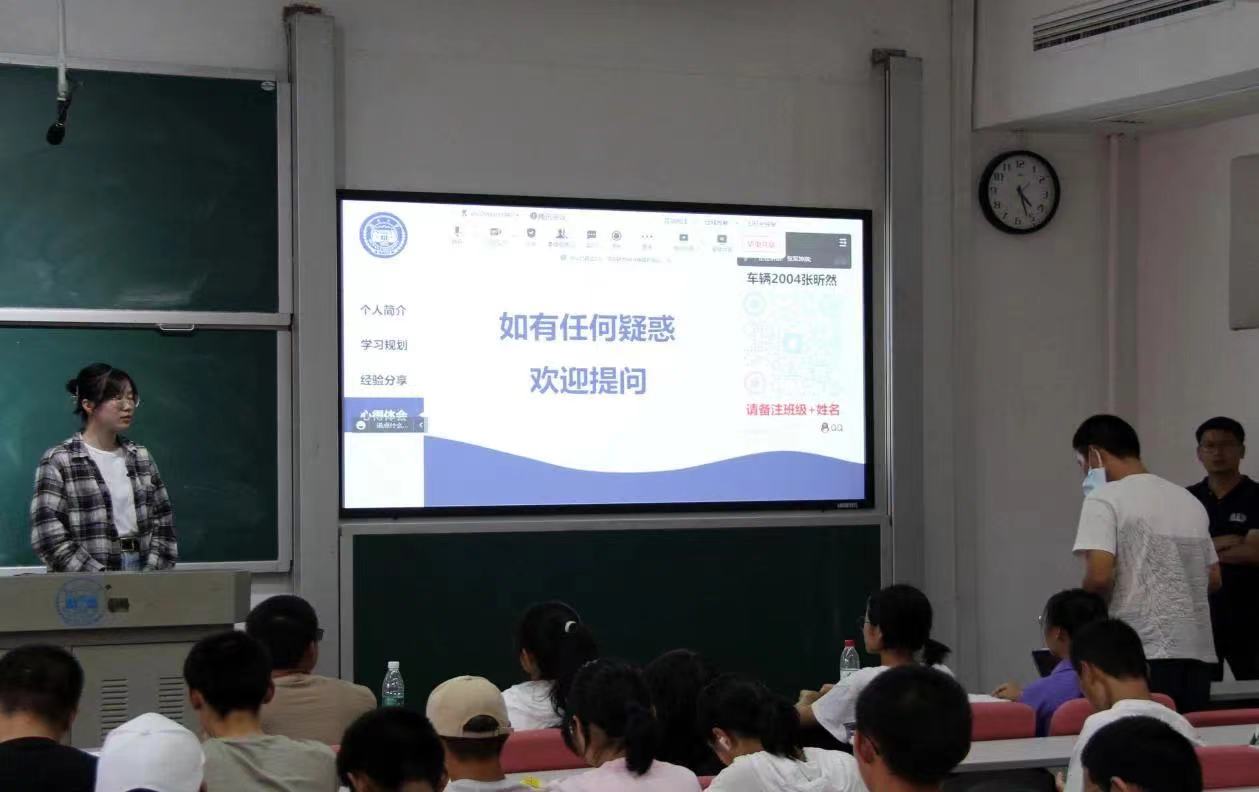 张昕然在经验分享会上为学弟答疑解惑(左一)。