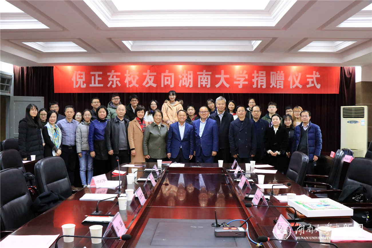 12月17日下午,我校校友、清科集团董事长倪正东向母校湖南大学党委宣传部(新闻办公室)地址中心捐赠一千万,设立“倪正东奖学金”、助力“湖南大学党委宣传部(新闻办公室)地址中心杰出青年教师奖”,支持母校“双一流”建设。校长段献忠出席活动并为倪正东颁发捐赠证书。校党委副书记陈伟主持捐赠仪式。