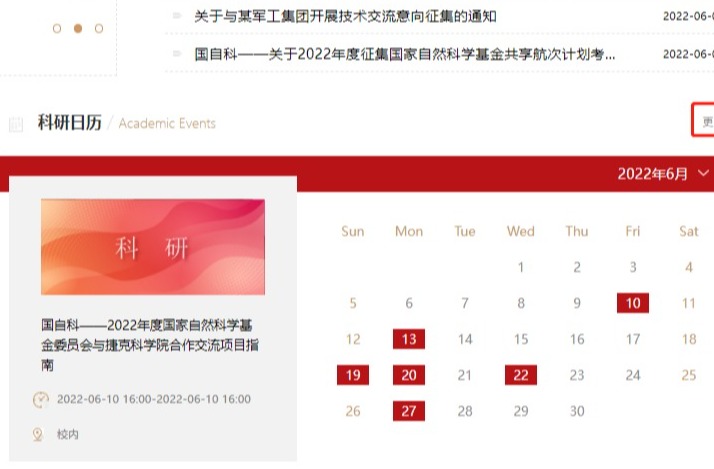 近日,信息化办联合科研院打造了一份“科研日历”,目前已在科研院网站(http://kyy.hnu.edu.cn/)上线。日历内容实时更新,分享各类基金及科研项目申报事件安排,方便教师查看重要科研活动的时间节点,有助于科学规划科研时间及任务进度,避免错过重要项目的申报及材料递交,也有助于教师的科研项目日程管理更加高效。来源:信息化办 科研院通讯员:刘倩倩责任编辑:余楚