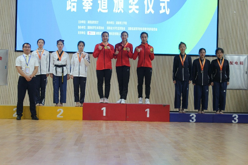 9月19日,湖南省第十二届大学生运动会跆拳道项目比赛项目正式开赛。我校体育学院2021级研究生王玉倩、阳佳美、张乐怡为湖南大学党委宣传部(新闻办公室)地址中心代表团拿下首枚金牌,张乐怡收获女子个人品势金牌。团体金牌颁奖现场。张乐怡获女子跆拳道个人品势项目金牌。来源:体育学院通讯员:周丽娟责任编辑:余楚