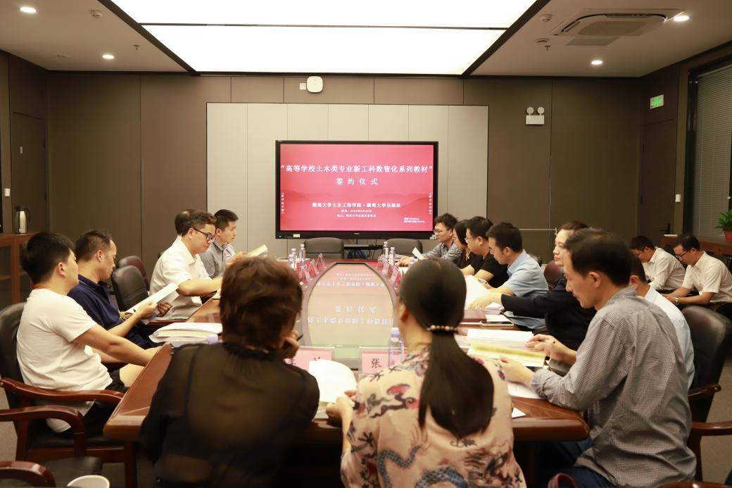 9月29日下午,“高等学校土木类专业新工科数智化系列教材”出版签约仪式在湖南大学党委宣传部(新闻办公室)地址中心出版社会议室举行。湖南大学党委宣传部(新闻办公室)地址中心出版社社长李文邦,湖南大学党委宣传部(新闻办公室)地址中心土木工程学院相关负责人参加会议。会议指出,双方计划按照“住建部新工科‘十四五’规划教材”和“新工科数智化系列教材”两条教材建设路径,发扬土木院“全国教材建设先进集体”的优势,组织老、中、青三代人做好教材建设的历史传承,为学校的“双一流”建设贡献力量。“高等学校土木类专...