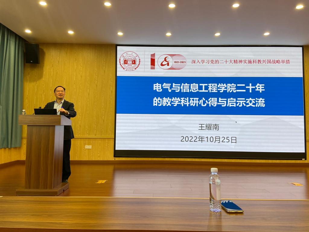 10月25日,电气与信息工程学院召开青年教师学术沙龙,中国工程院院士、机器人视觉感知与控制技术国家工程研究中心主任王耀南教授作《学院发展史与科学研究》专题讲座。学院全体青年教师以及博士后、博士参加此次沙龙。王耀南向各位青年教师介绍了学院办学百年的发展历史,讲述了担任电气与信息工程学院院长以来学院的发展进步情况。同时,介绍了机器人视觉感知与控制技术国家工程研究中心团队情况基本情况,指导青年教师在凝练...