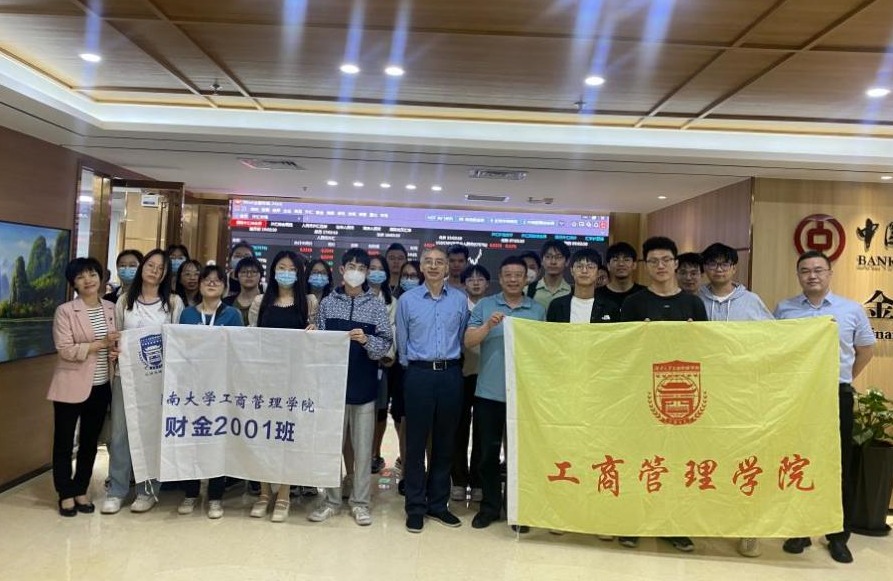 近日,工商管理学院组织2020级财金班全体同学赴中国银行湖南省分行金融市场部开展教学见习活动。同学们实地参观了中国银行湖南省分行外汇交易中心的金融市场部,了解外汇交易中心的代客业务、外汇交易的流程和具体的操作步骤。在见习活动现场,同学们认真观摩了国际业务部门实时的外汇交易数据平台,对外汇市场的运行机制和重要性,以及中国银行在外汇市场上的地位和作用有了更深入认识。见习活动中,同学们与该行金融市场部、...