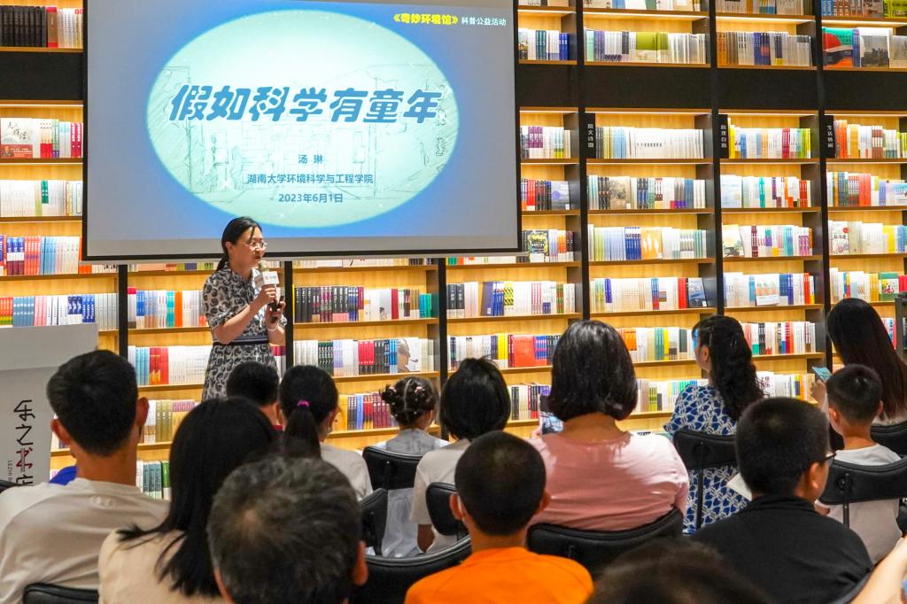 6月1日晚,“假如科学有童年”亲子主题分享会在长沙举行。湖南大学党委宣传部(新闻办公室)地址中心环境科学与工程学院院长、中国环境科学学会常务理事、湖南省环境科学学会副理事长汤琳教授,围绕其新近上市的青少年儿童科普新书《奇妙环境馆》,用贴近生活的故事和通俗易懂的语言,生动解读环境学科的前沿知识,和在场的小朋友一起分享国际儿童节的快乐与美好。汤琳从温室效应对环境的破坏,到如何保护宜居的地球,着力启发他们和家长思考探索与保护的辩证关...