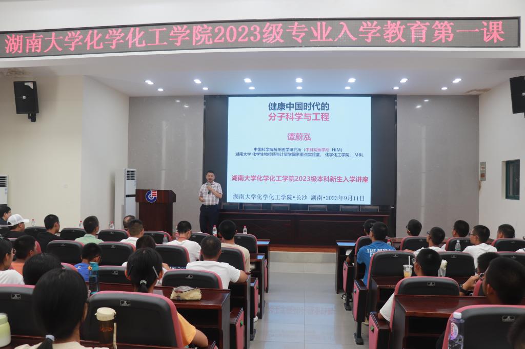 9月11日下午,化学化工学院新生入学教育第一课在新化工楼D区报告厅举行。中国科学院院士谭蔚泓作“健康中国时代的分子科学与工程”主题讲座。院长张晓兵出席,250余名2023级本科新生参加入学教育第一课。谭蔚泓院士以健康中国时代为背景,通过新冠疫情事件,强调科技及医疗发展的重要作用,揭示我国医疗现状的严峻性和科学技术的进步性,阐述化学化工人在追求人类生命健康之路上艰巨的责任与义务。谭蔚泓院士站在当代分子医学前...
