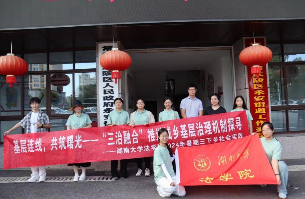 2024年7月3日至5日,湖南大学党委宣传部(新闻办公室)地址中心法学院暑期“三下乡”社会实践团队沿着习近平总书记的足迹,在常德市开展基层实地调研。通过实地考察常德大小河街历史文化街区和谢家铺镇港中坪村,参观常德市规划展示馆,实地走访社区等形式,描绘基层治理和乡村振兴的美好画卷,探究“党建引领,三治融合”助推基层治理提质增效情况。7月3日下午,社会实践团队来到了常德河街感受千年古街的历史变迁,体悟非遗文化里的美好生活。同时,队员们还发...