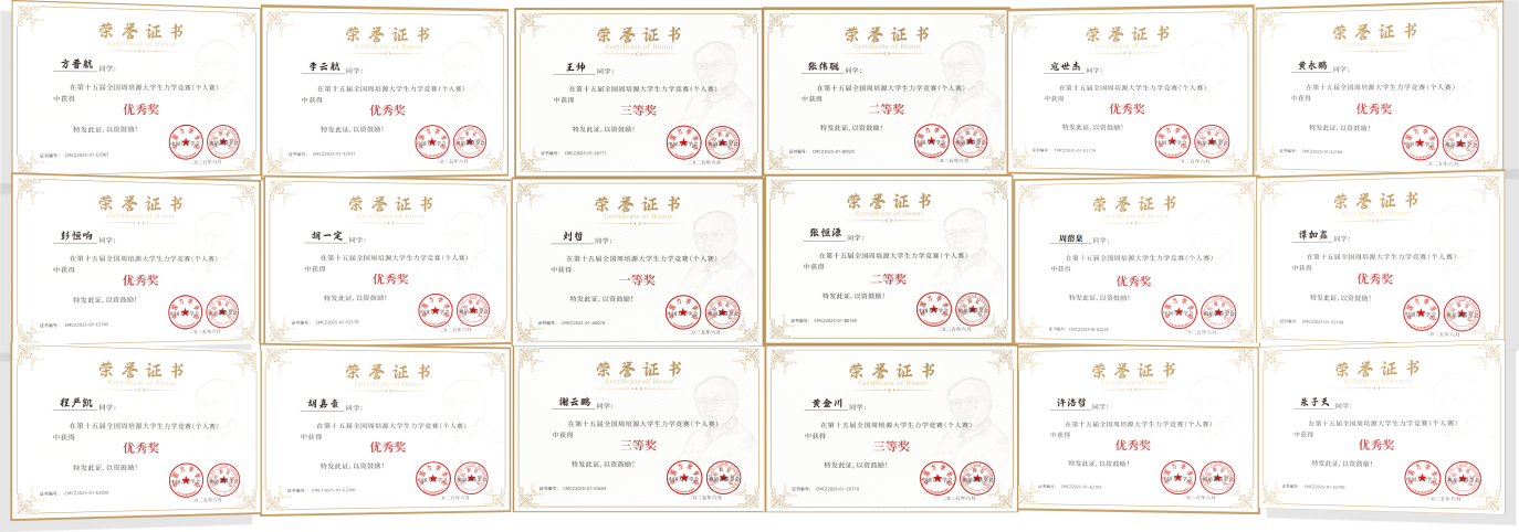 近日,第十五届全国周培源大学生力学竞赛(个人赛)举行,刘哲同学斩获一等奖,张伟聪、张恒源两位同学获二等奖,谢云鹏、黄金川、王帅三位同学获三等奖,程严凯等十二位同学获优秀奖。我院周芬老师获评优秀指导教师。全国周培源大学生力学竞赛是由教育部高等教育司委托中国力学学会、周培源基金会主办的国家级A类赛事,每两年举办一届,旨在推动高校力学教学改革、提高学生学习力学的兴趣、培养解决实际问题能力、选拔力学创新...