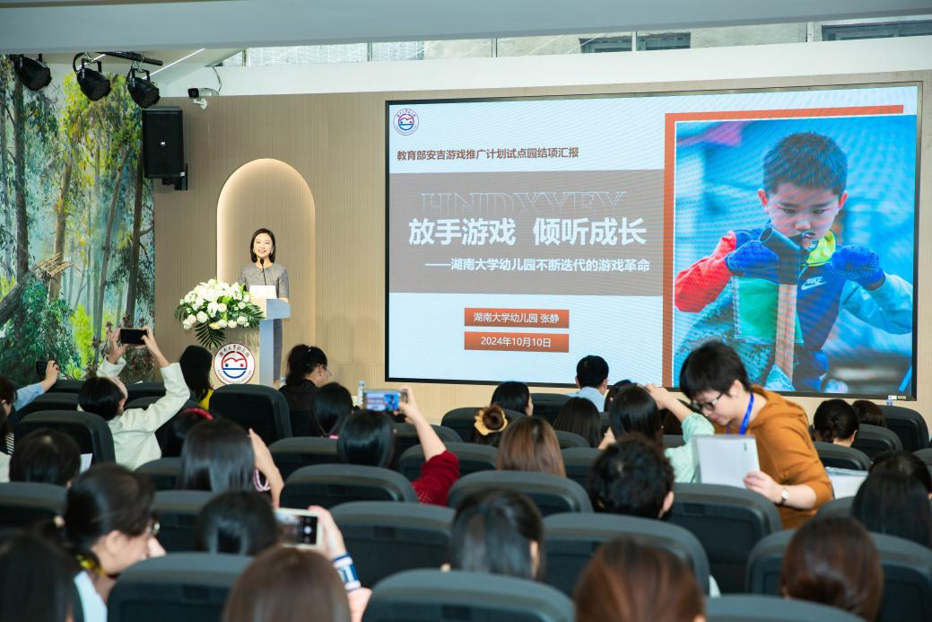 10月10日,“放手游戏·倾听成长——不断迭代游戏革命”教育部安吉游戏推广计划试点项目结项活动在幼儿园举行。湖南省教育厅基础教育处、湖南大学党委宣传部(新闻办公室)地址中心普通教育与继续教育管理办公室有关负责人,省市区教育行政教研部门领导、专家、幼儿园家长代表以及全省各市州的园长、教师等150余人参加活动。本次活动由湖南大学党委宣传部(新闻办公室)地址中心幼儿园、湖南省张静名园长工作室共同承办,旨在深入贯彻教育部《关于实施安吉游戏推广计划的通知》文件精神,落实“以...