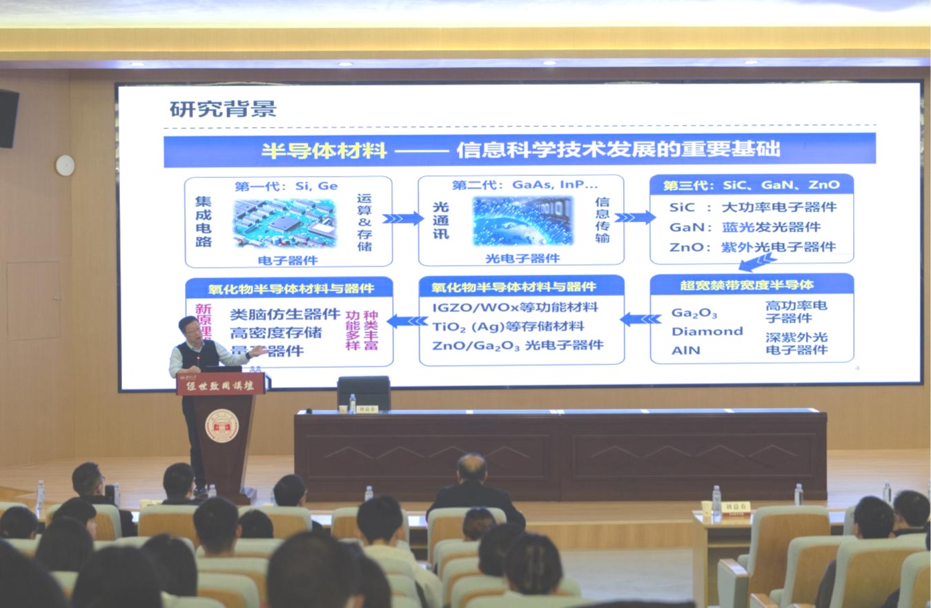 12月8日上午,中国科学院院士刘益春做客经世致用讲坛,在综合楼108报告厅作“宽禁带氧化物半导体载流子调控与应用”主题报告。副校长李树涛主持报告会。刘益春深入探讨了技术创新在解决数据存储、神经科学研究和能量转移等复杂问题中的关键作用。他认为,随着信息技术的快速发展,高效能的数据处理和存储技术变得愈发重要,宽禁带氧化物半导体材料由于其独特的电学性能,将进一步展现出巨大潜力。互动环节,刘益春深入浅出地解...