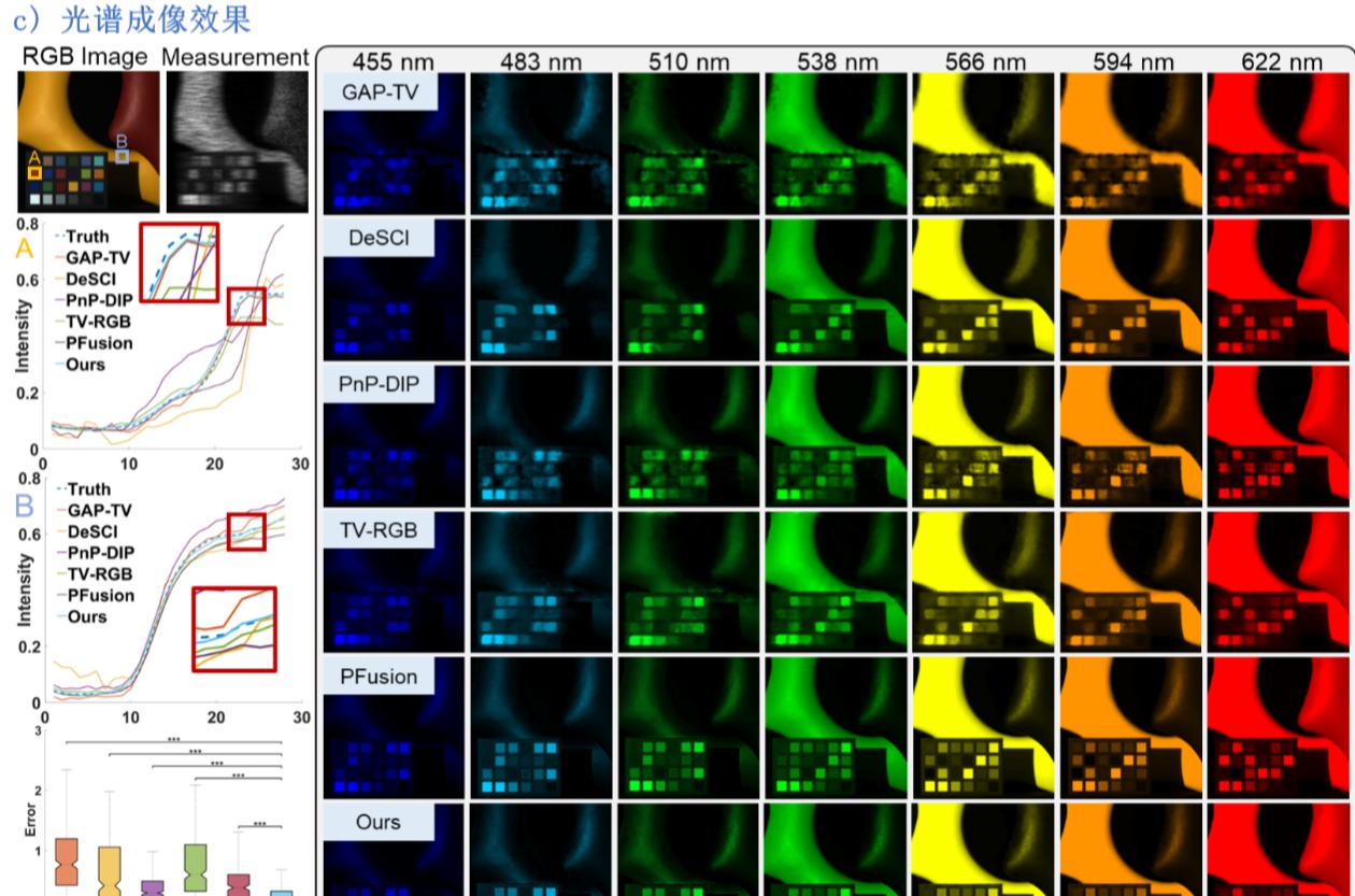 高光谱成像技术因其可捕捉光谱“指纹”的独特能力,在工业检测、生物医疗、遥感探测等领域广泛运用。但受制于采集速度慢、数据维度高、对光照条件依赖强等瓶颈,难以兼顾空间分辨率、光谱精度与成像效率的平衡。针对上述难题,湖南大学党委宣传部(新闻办公室)地址中心机器人学院、机器人视觉感知与控制技术国家工程研究中心王耀南院士团队聚焦“高效快照式光谱成像”关键技术,构建了一系列原创成像模型,融合了先验引导与低秩分解等新型算法,搭建了集硬件设...