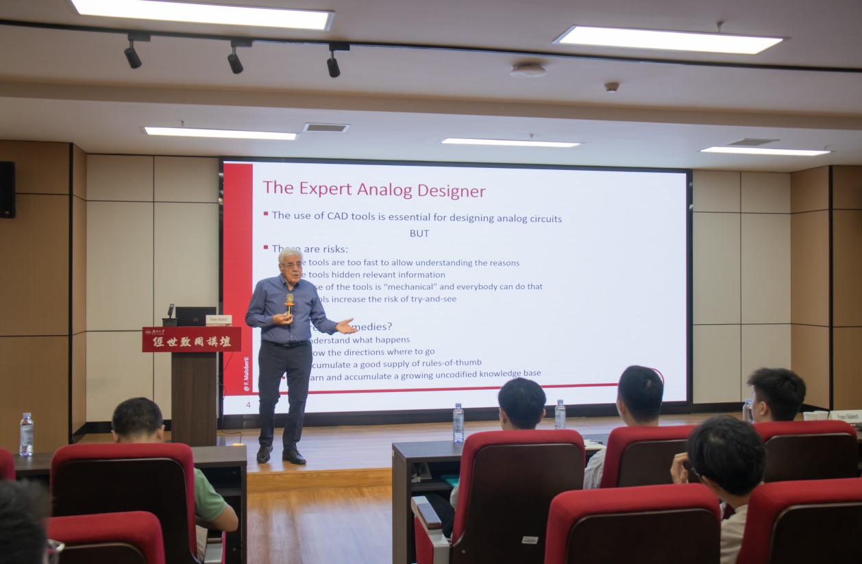 6月16日上午,意大利帕维亚大学荣誉教授、IEEE终身会士Franco Maloberti做客经世致用讲坛,在半导体学院C105报告厅作“运算放大器和跨导放大器”报告。Franco Maloberti深入探讨了运算放大器(op-amps)领域的前沿议题。他指出,在运算放大器技术飞速发展的当下,快速仿真速度虽提升了设计效率,却也带来了诸如仿真结果精准度把控等一系列挑战。此外,Franco Maloberti还进一步围绕增强运算安培性能的策略,展示了安培设计从架...