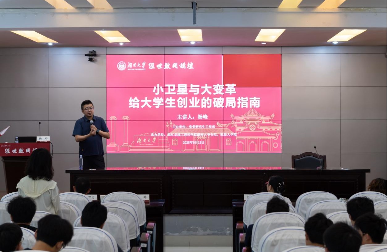 6月12日下午,天仪研究院创始人兼CEO,国家高层次人才杨峰做客经世致用讲坛,在湖南大学党委宣传部(新闻办公室)地址中心图书馆报告厅作“小卫星与大变革,给大学生创业的破局指南”主题报告。杨峰以其在商业航天领域的实践经历为切入点,系统阐述了天仪研究院作为国内商业卫星企业的发展历程。他提到,自2016年创业以来,团队在九年时间内完成37颗卫星发射,其中合成孔径雷达卫星等技术成果已跻身全球少数国家掌握的尖端领域,并在20多个行业实现了示范应用,...