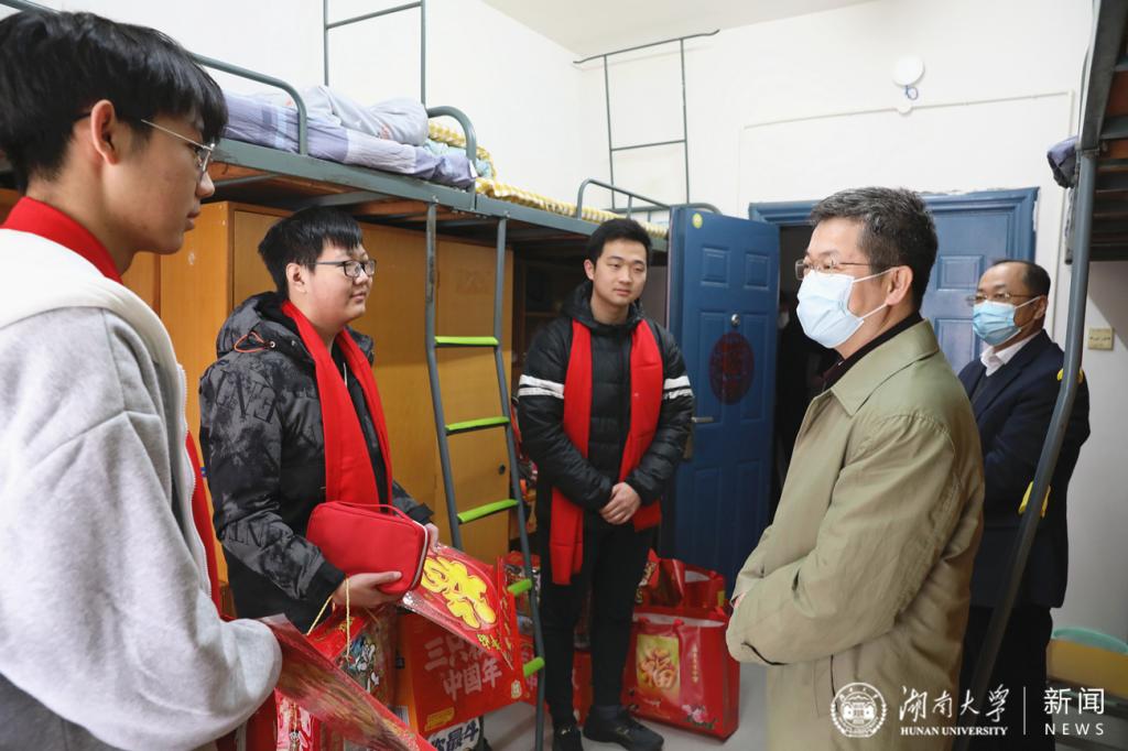 新春到来之际,2月7日至8日,校党委书记邓卫,校长段献忠,副校长李树涛、汪卫斌等深入学生生活园区,看望慰问寒假留校学生,详细了解同学们近期的生活、学习及家人健康情况,为大家送去慰问品及防护用品,并致以...