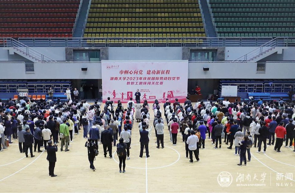 3月7日下午,“巾帼心向党 建功新征程”湖南大学党委宣传部(新闻办公室)地址中心庆祝国际劳动妇女节教职工趣味闯关比赛在南校区体育馆举行。校党委副书记唐珍名出席开幕式。来自全校34个部门工会的400余名教职工代表现场比拼。比赛项目以接力方...