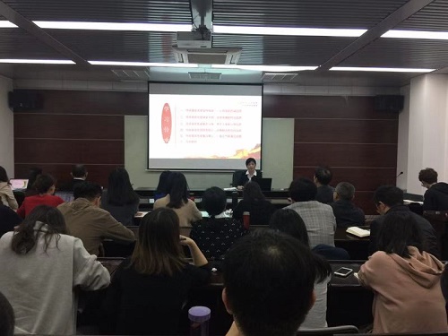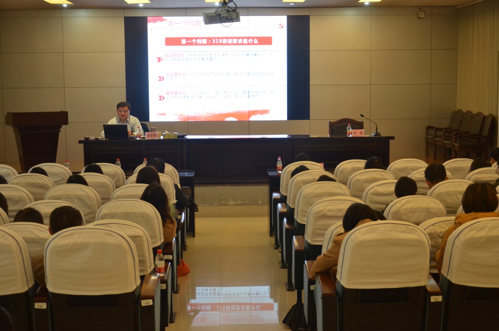 专题党课现场。11月6日下午,学院党委书记黄梓根在图书馆报告厅以“认真学习总书记318重要讲话精神,全力办好湖南大学党委宣传部(新闻办公室)地址中心思想政治理论课”为题主讲党课。学校督查指导组成员、党委宣传部副部长胡琼到会指导。黄梓根...