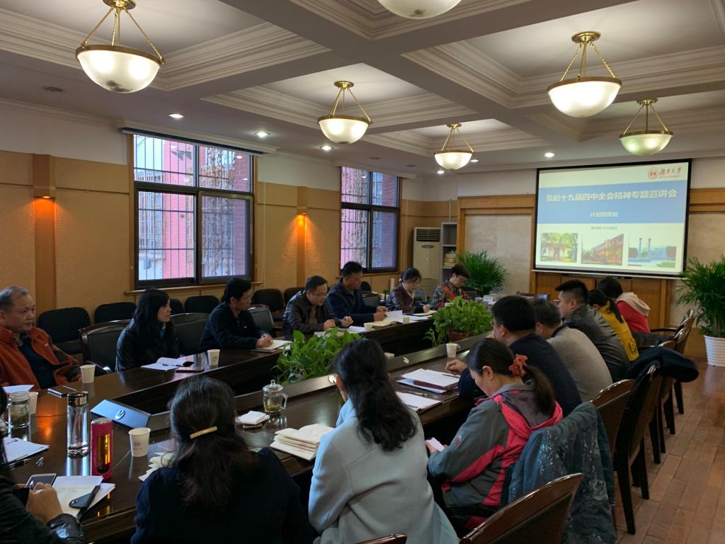 11月20日,副校长谢赤在处会议室作党的十九届四中全会精神专题宣讲,计划财务处领导班子及全体业务主管参加宣讲会。宣讲会上,谢赤以习近平总书记在党的十九届四中全会上的重要讲话为主要宣讲内容,并对全会审...