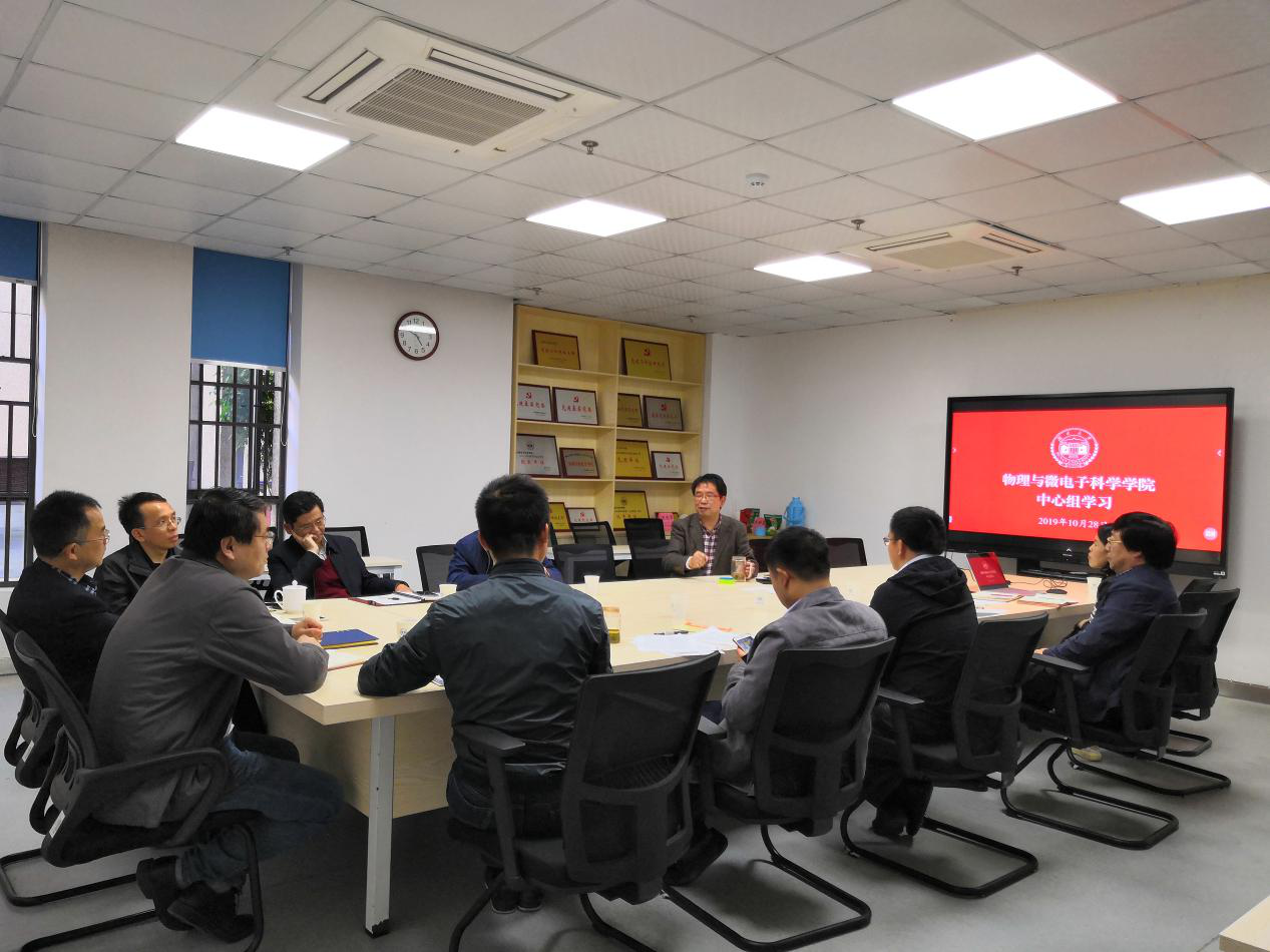 10月28日下午,物理与微电子科学学院开展理论学习中心组“担使命、履职责,矢志为师生服务—践行为民宗旨,潜心立德树人”主题学习研讨。学院班子成员,院长助理,两委委员,系、中心、室主任,教工党支部书记,学生辅导员等出席会议。院党委副书记陈晓萍主持。会上,院党委副书记陈晓萍传达了《中国共产党宣传工作条例》中关于宣传工作的定位和作用、指导思想和根本任务等重要内容。副院长廖蕾传达了《统筹推进世界一流大学和...