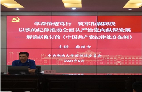 5月28日,为深入学习贯彻习近平总书记关于党纪学习教育的重要讲话和重要指示精神,进一步推动党纪学习教育走深走实,图书馆党委在图书馆一楼报告厅召开全体党员大会,开展党纪学习教育专题党课活动。会议由党委副...